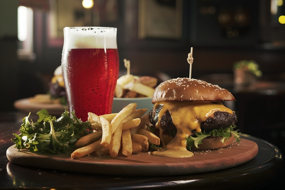 Juicy burger topped with crispy bacon, cheddar, and tangy BBQ sauce.