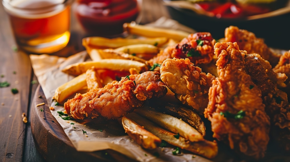 Crispy fried chicken atop a fluffy waffle with spicy maple syrup.